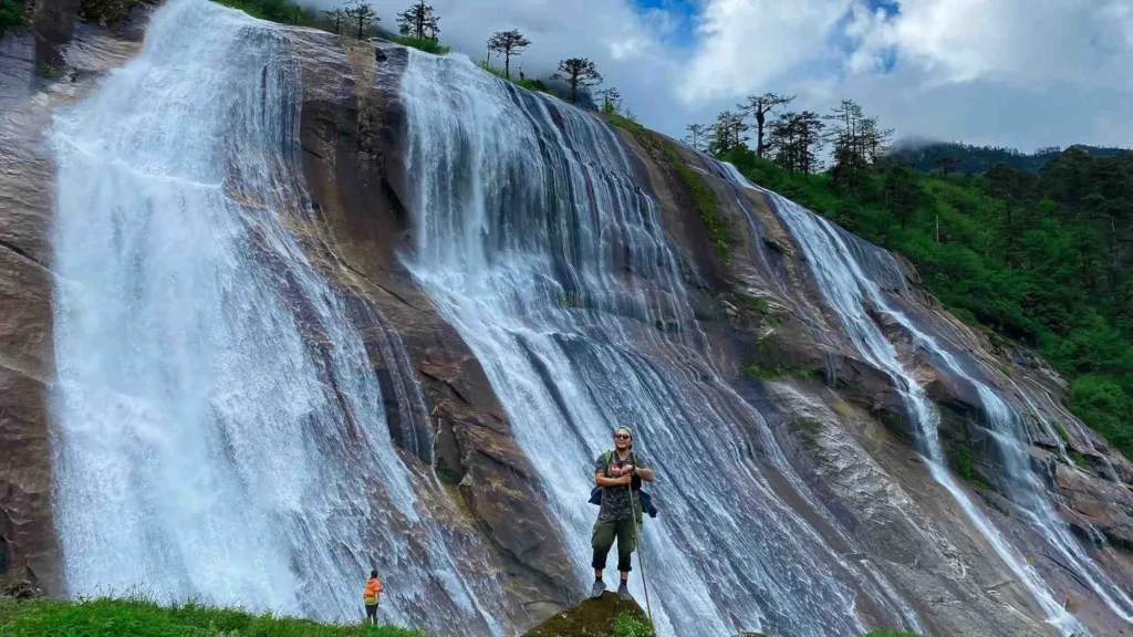 A moderate trail through dense pine forests and scenic hamlets. - Day 3 – Drive & trek to Chumi Gyatse Falls